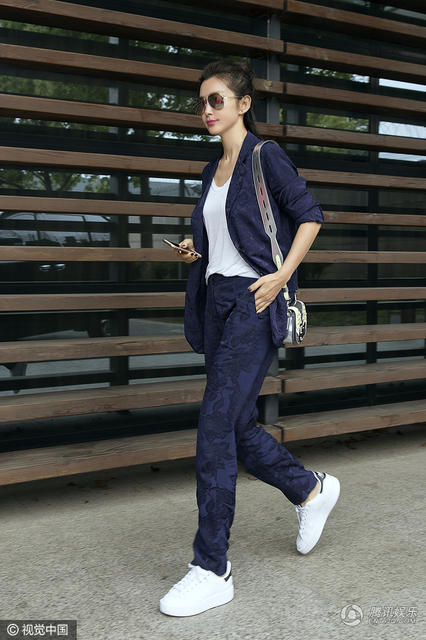 视觉中国讯 上海,5月10日,第69届戛纳电影节即将开幕:李冰冰现身上海机场出发前往戛纳电影节,一身简洁利落的藏蓝色西装,十分有型帅气。