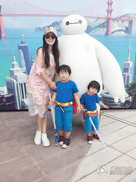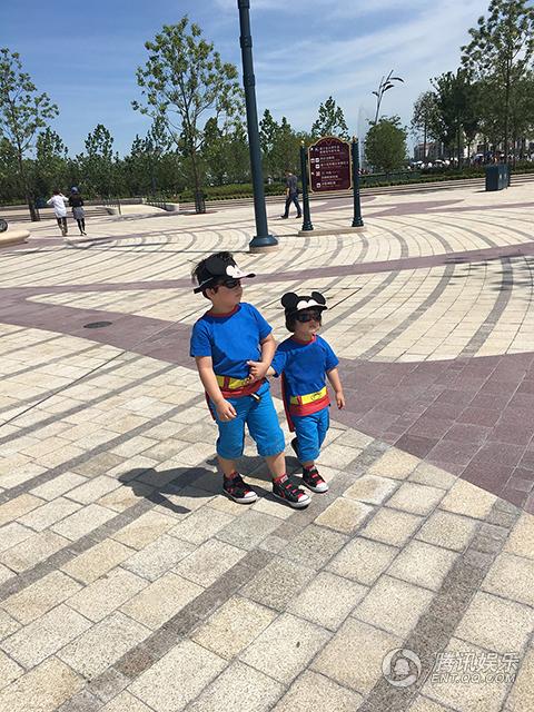 组图:冉莹颖母子游迪士尼 轩轩皓皓扮超人兄弟