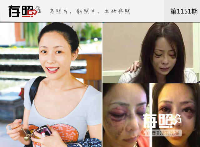 【台湾名模王静莹被打得眼角肿胀如球】曾经和李连杰合作过《黄飞鸿》、扮演过十三姨的台湾名模王静莹1995年闹出了娱乐圈最大的家暴案,指控豪门丈夫陈威陶对自己实施家庭暴力,导致眼角受伤缝了6针。据她描述,两人婚后不足9个月的时间内,陈威陶打了她7次,就连生产前一天还被打,妹妹为了保护她,也被打落了牙齿。与此同时,事件主角之一陈威陶指家庭暴力是无稽之谈,并爆料妻子带十几个黑衣人押住自己强行抢走刚满四个月的儿子。2008年两人还是结束了这段充满暴力的婚姻。(图左为王静莹一家三口,图右为王静莹公开家暴照片)