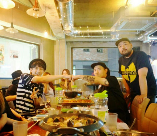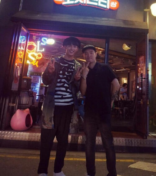 吴磊与狗哥Gray聚餐。