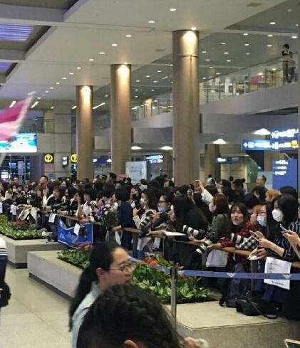 此前,《琅琊榜》在韩国热播,胡歌、王凯、吴磊等内地明星在韩国收获了大量人气。图为韩国迷妹为吴磊接机。