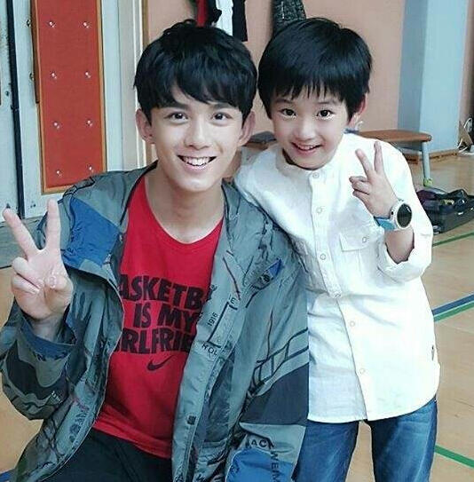吴磊与小迷弟合影。