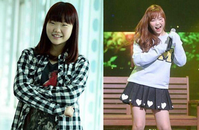 出道前身材77公斤的朴宝蓝,每天运动两小时,专注于有氧运动和重训,以少量多餐的方式进食,受到45公斤,真的是身材差最多代表拉!整个脸型还有气色也差很多,难怪减防肥也可以改变外貌。