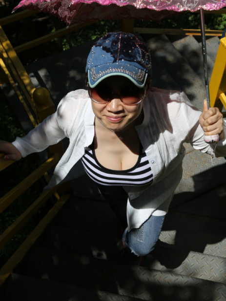 5月31日,芙蓉姐姐晒出一组登山性感照,她素颜出镜面泛油光,大胸更是十分抢镜,华丽丽的乳沟引网友点赞。