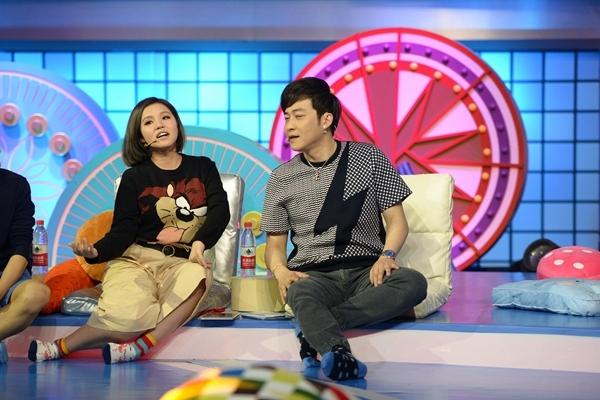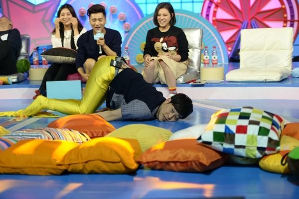 节目现场弟弟拿出自己缝制的鱼尾让尉迟琳嘉与谢依霖也尝试一把美人鱼的感受。尉迟琳嘉“胖头鱼”的形象遭全场热烈吐槽,轮到谢依霖穿鱼尾时却费了好大劲才套进去,因为鱼尾太紧谢依霖尴尬地表示自己像是没穿裤子,引发全场爆笑不止。图为美男鱼的苦恼者姐姐。