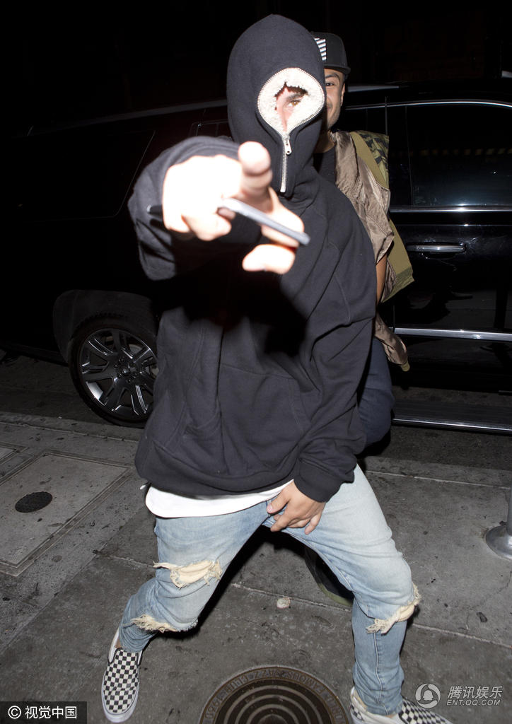 组图:比伯防偷拍又有新招 全程仅露一只眼