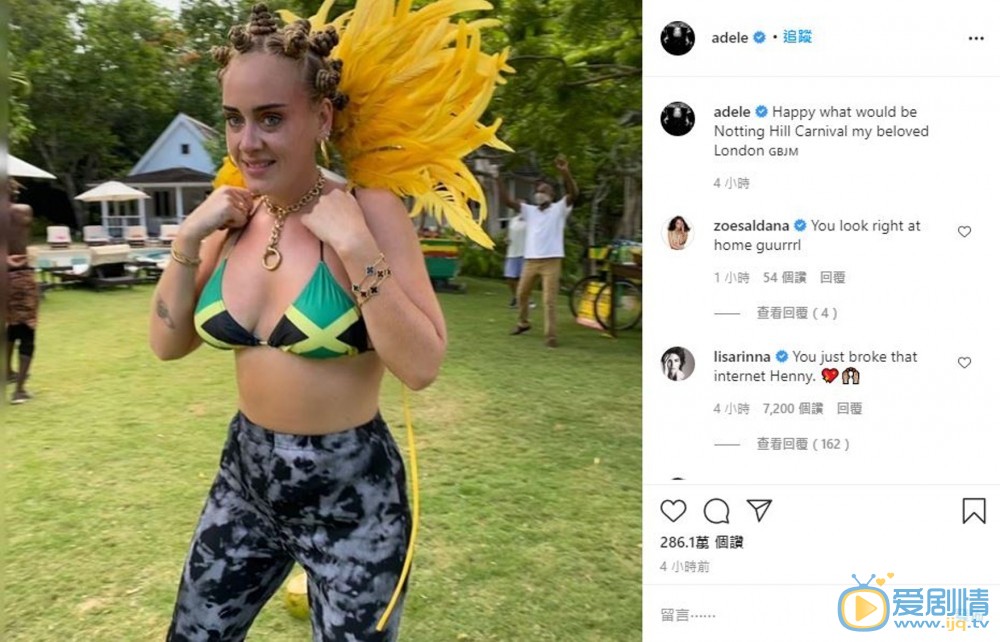英国天后Adele世界各地圈粉无数,唱片销量总数超过1亿张,成为史上最畅销的歌手之一。一向以丰满身形见称嘅Adele自去年尾,与前夫SimonKonecki离婚后,一直鲜少出现在公开场合。呢日佢罕有上载性感照,大晒瘦身成果令人惊艷﹗ 其实自去年开始Adele靠「激瘦饮食法」(SirtfoodDiet)成功于半年内减去19公斤(约41磅),去年12月尾圣诞派对,以及今年5月Adele32岁生日,身穿贴身连身裙嘅Adele已明显细咗几个码。8月31日佢上载参加嘉年华嘅照片,首次公开性感照晒瘦身成果,身穿比坚尼上衣加漂染长裤,手臂、腹部及面部都比以往清减唔少,短短4小时已有286万Like﹗