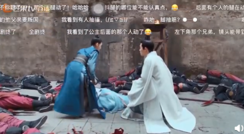 在这部古装剧中,公主和白衣男子正忙着在地上士兵的尸体前寻找线索。然而,当摄影机放在公主身上,她准备蹲下时,观众仔细观看,看到绑在她身后的士兵的尸体被拉出。这种帮助让弹幕都炸了。他们都指出这种帮助太可笑了。