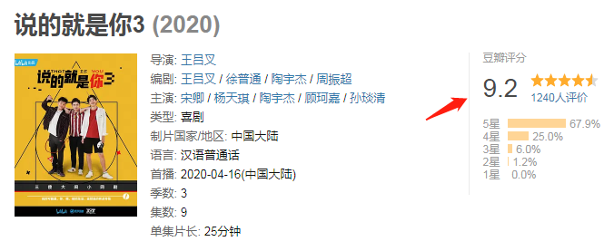 1.是你说了“3”豆瓣:9.2