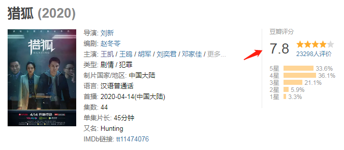 3、《猎狐》豆瓣:7.8