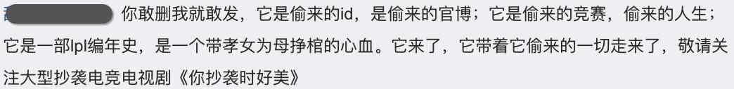 这是因为原小说中的角色设置表明存在一个参照原型。一个角色结合了几个电子竞争对手的特点,整合的方向叫做电子竞争粉,它非常不满意,认为它有丑化玩家和电子竞争圈的嫌疑。