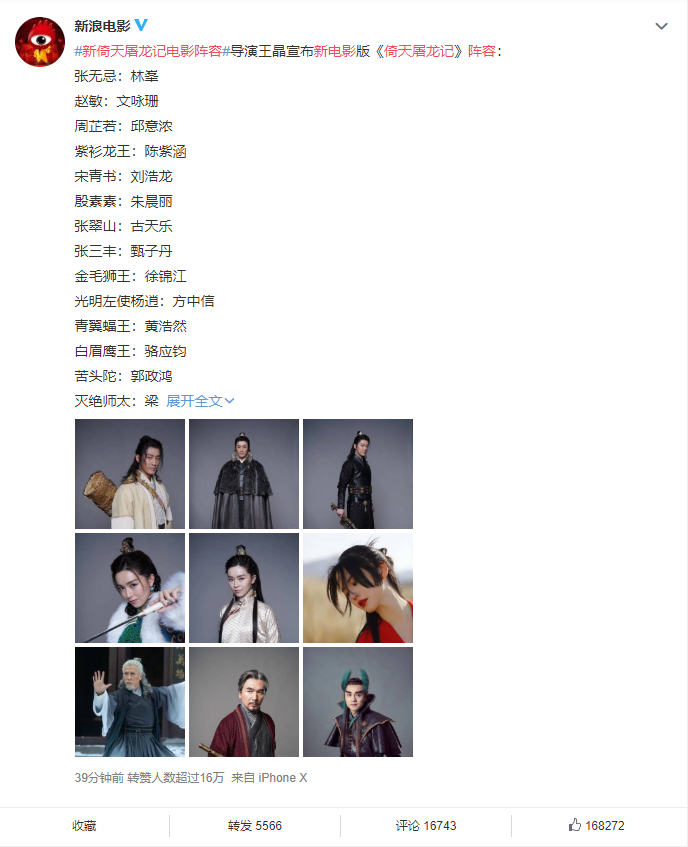 两天前,导演王晶宣布了新版《屠龙记田义》的阵容。第一组化妆照片很快在微博上被搜索到。