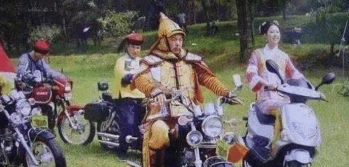 除了《西游记》,另一部童年经典应该是《朱桓公主》。这部戏的演员们也开了很多玩笑。有一个曝光的插曲,皇帝、太监和宫女一起骑摩托车。这个跨越时间的场景给人们带来了很多笑话。而且,斯特恩·老佛爷在剧中还被拍到裹着一件军大衣与·葛戈和黄阿玛在一起。这三个人仍然有如此和谐的画面,真是不可思议。
