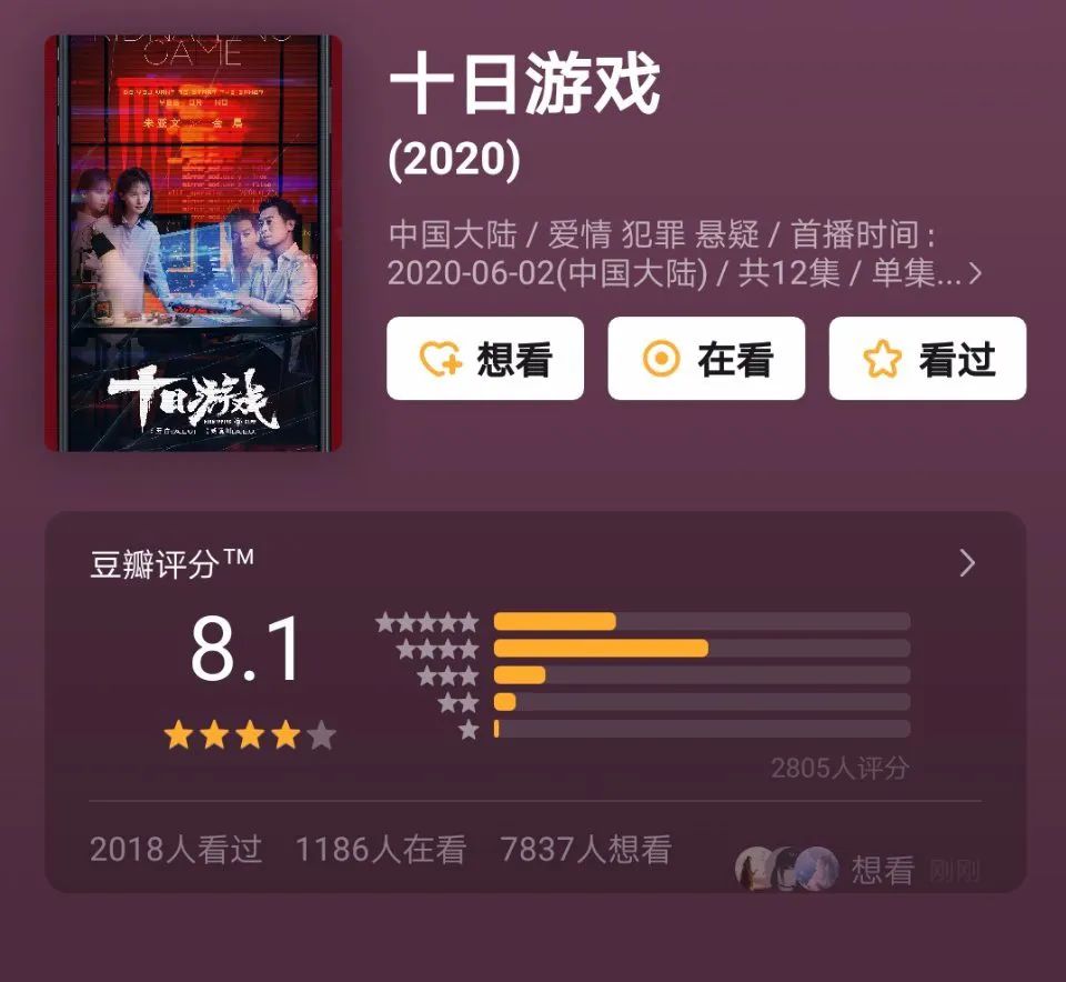 雾剧场的演员阵容-不是这个。第一场戏将在六月一到时上演。原著是东野圭吾的推理小说。《小队》是创造了“在白夜追逐邪恶”的五元文化;主角朱是和吉娜,配角是和,特别是倪大洪。剧本很棒,剧中的角色很有控制力。豆瓣得了8.1分。这就是我所说的——悬疑爱情剧《第十场比赛》。